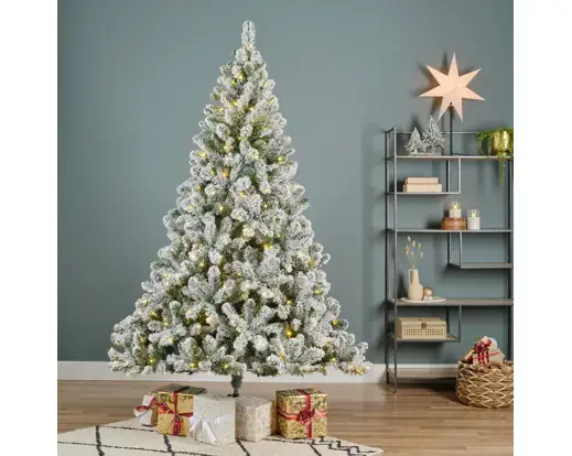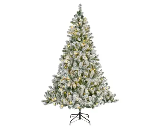 A snowy flocked great value pre-lit artificial tree.