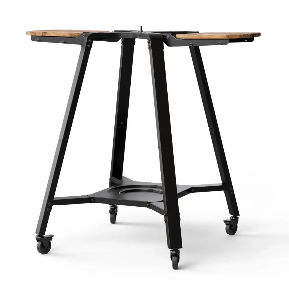 Designed with cooking on Arc or Arc XL in mind, your oven securely connects to the stand with an easy turn fastener and sits at the perfect height for cooking. The durable wooden wings and hanging hooks are built in for convenience while the four large wheels make it easy to move your oven around your outdoor space.
