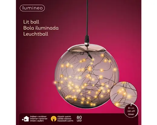 Micro LED ball hanging o/d smokey/cl warm d20cm