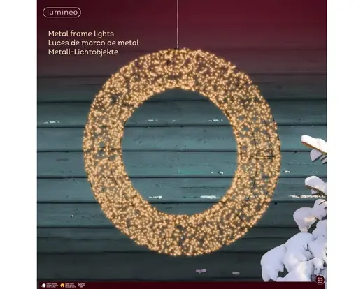 Micro LED frame light mains powered metal wreath outdoor. L.9cm W.78cm H.78cm.